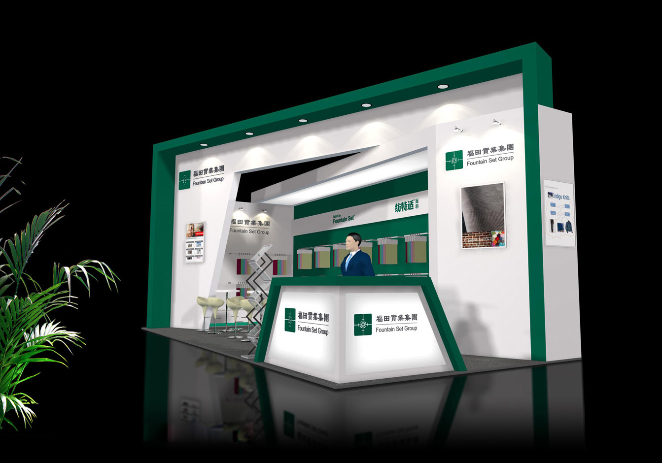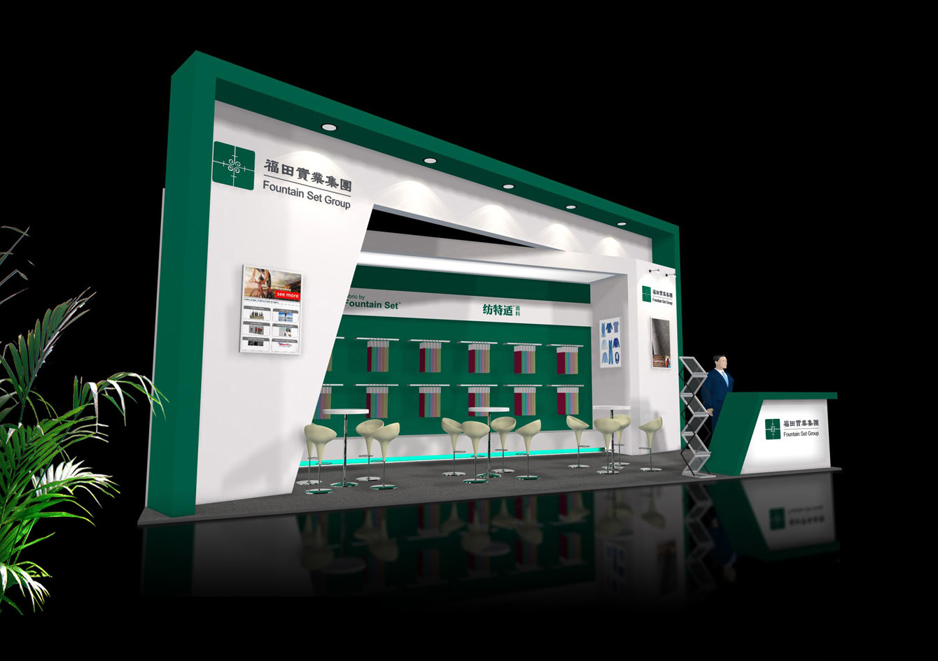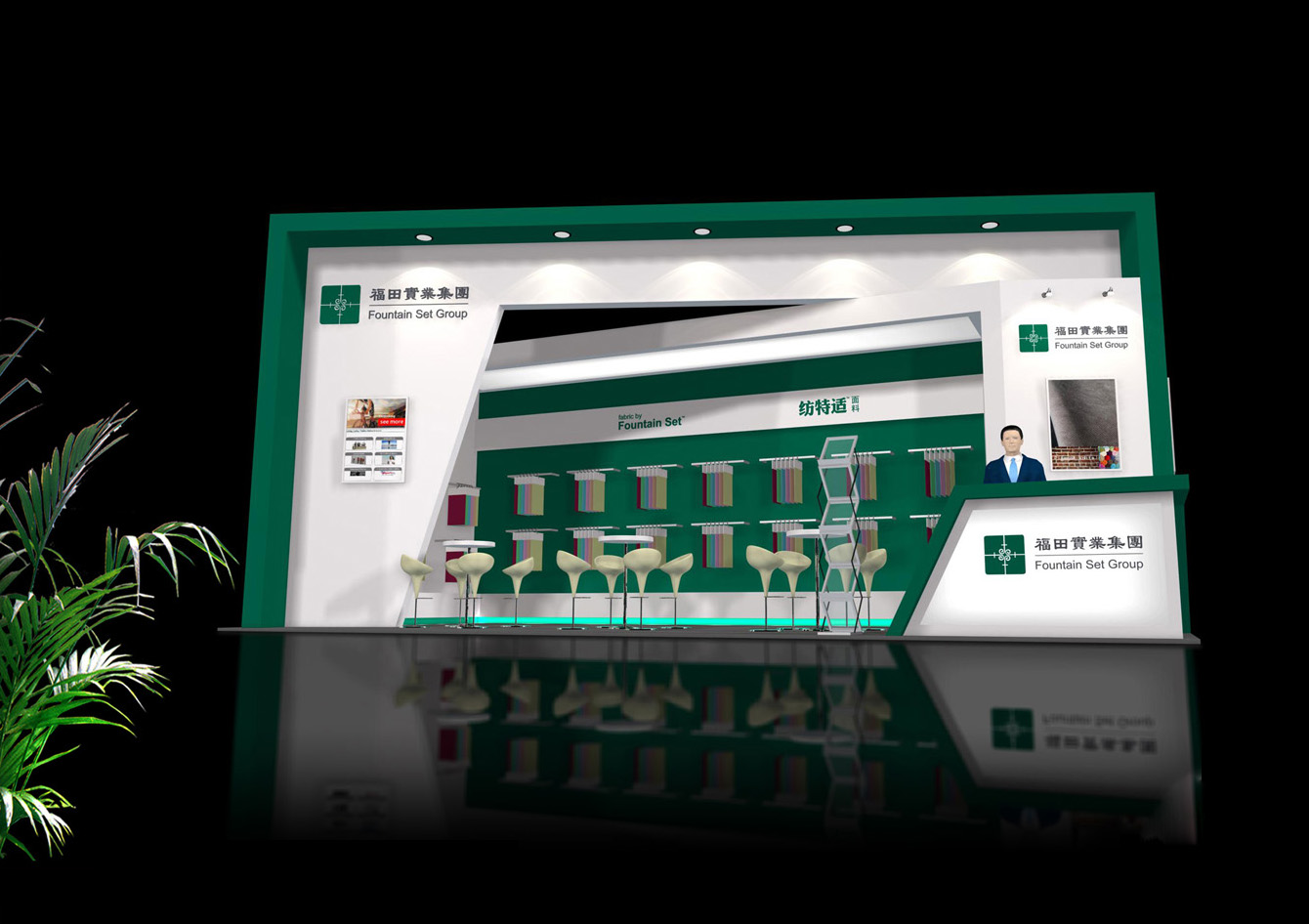 福田實業(yè)(集團(tuán))有限公司是參加中國國際紡織面料及輔料博覽會的圓筒針織面料生產(chǎn)商之一,提供針織、染色、印花及整理等高度垂直之綜合服務(wù)。展會核心在于面料產(chǎn)品的陳列,以及優(yōu)勢和競爭力說明,所以在設(shè)計中大量采用壁掛式展架的陳列方式,將面料垂掛于背景墻上直觀陳列。整體色調(diào)選用福田實業(yè)logo主色,結(jié)合方形框架裝飾展臺,樹立品牌統(tǒng)一形象,其他區(qū)域可作為洽談區(qū)。