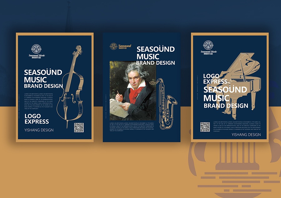 設(shè)計靈感:關(guān)鍵詞,“最古老樂器"、"行云流水聲"。進(jìn)行形象標(biāo)識設(shè)計。和中國一樣,西方很早就有了音樂。在、古希臘的雕塑和繪畫中,人們就看到了彈豎琴的樂手形象,一直可以追溯到新石器時代至古希臘、波斯、美索布達(dá)米亞時期。