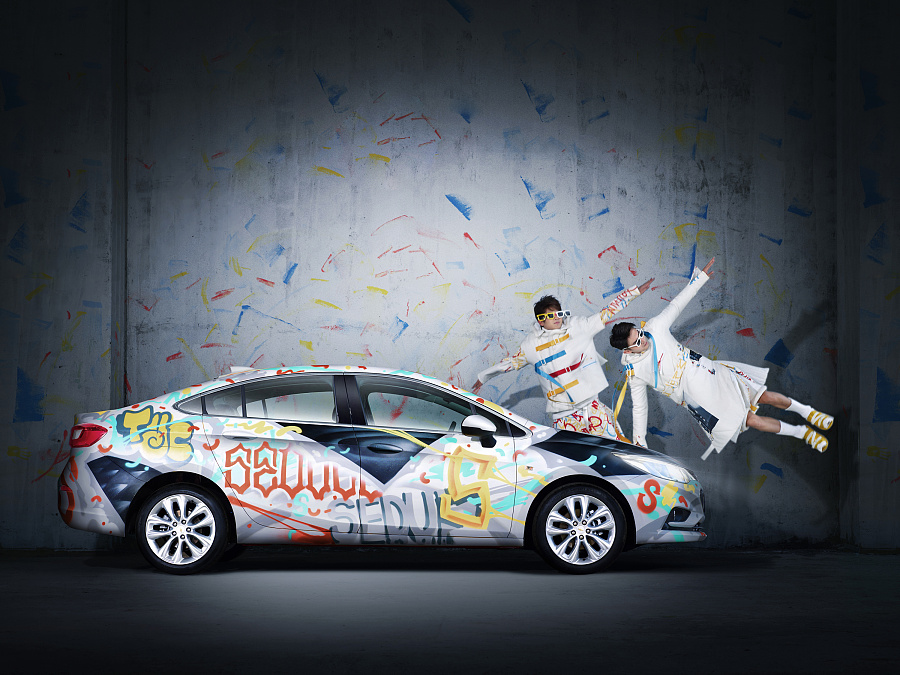 雪佛蘭的主題“把全新科魯茲交給我!”1912從方案準備,涂鴉創(chuàng)作,服裝搭配到拍攝出圖用時1個月的準備!