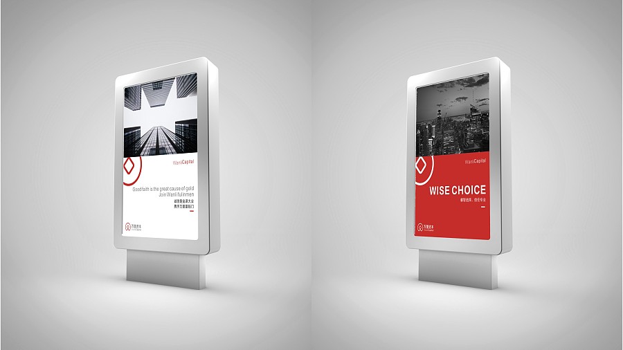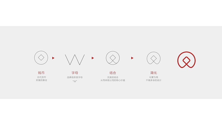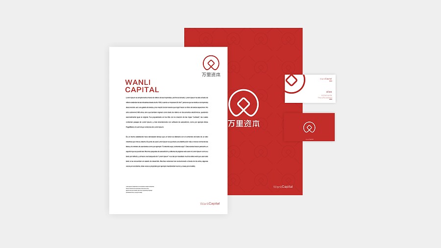 萬里資本形象設計案例是由1912做的金融類形象設計案例之一。其標志設計的采用的是,W+錢幣的結合,運營喜慶的紅色輔助。