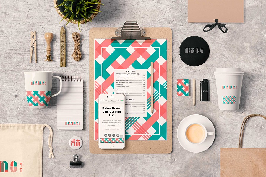 1912分享:momo甜品店vi設(shè)計,VI設(shè)計的風(fēng)格是紅綠色色調(diào)設(shè)計,具有條紋路的設(shè)計樣式,為食品增加了暖意