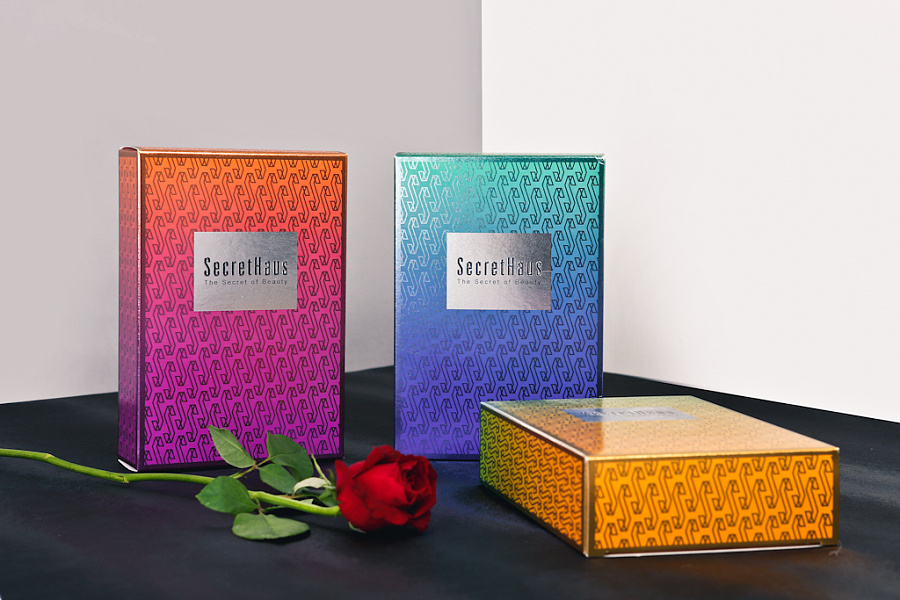 在包裝設(shè)計(jì)上,我們觀察到皮膚表層的紋理,擁有許多複雜的菱形紋路,因此繪製了菱形格紋來代表肌膚的紋理,并在這個(gè)菱形格紋中勾勒出與品牌名稱字首”S”相似的圖形,進(jìn)而將”S”重複排列,以此圖形運(yùn)用于包裝外觀設(shè)計(jì)。這樣細(xì)緻的重複圖形代表著本產(chǎn)品所要帶給消費(fèi)者的,是追求肌膚達(dá)到健康與細(xì)膩效果的面膜產(chǎn)品,并搭配鮮豔的漸層配色,如同光澤美肌的透亮的材質(zhì),以呈現(xiàn)出美麗與閃耀動(dòng)人的氛圍。