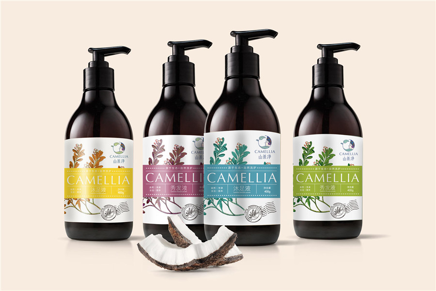 1912分享:洗護(hù)用品包裝設(shè)計,洗護(hù)用品主要是以山茶凈為設(shè)計展示,外包裝主要是以自然界中國的山茶封面設(shè)計為主,融入了品牌的介紹及特點。