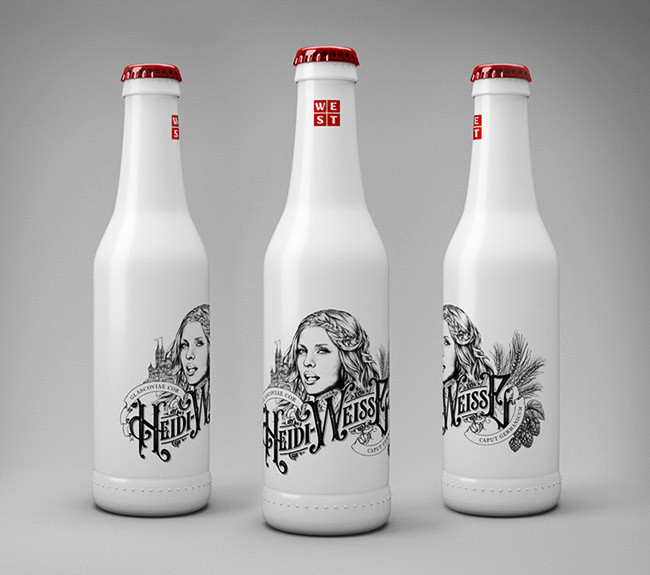 1912分享:奶白色酒瓶包裝設(shè)計案例,該設(shè)計采用的是奶白色為色調(diào)設(shè)計,同時采用手繪人物頭像為包裝素材進行設(shè)計