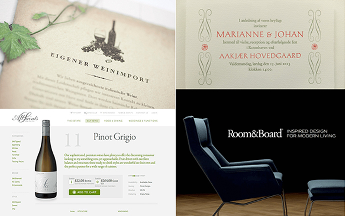 過渡期羅馬體(舊體到現(xiàn)代體)的代表性字體,非常經(jīng)典,給人古典、高貴的感覺。