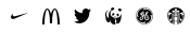 這些商標(biāo)都是16×16的尺寸,耐克,麥當(dāng)勞,twitter和世界野生動(dòng)物基金在小尺寸下依然能辨別,但美國(guó)通用電氣公司和星巴克在小尺寸下就失去辨別性了。