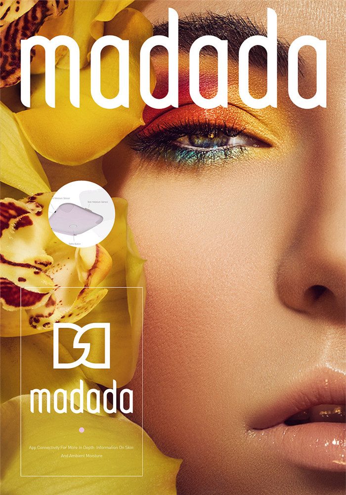 設(shè)計概念:智能穿戴設(shè)備早已不是陌生的產(chǎn)品,隨著物聯(lián)網(wǎng)科技的不斷發(fā)展進(jìn)步,產(chǎn)品智能化設(shè)計日益興起,他代表科技和未來。MADADA中文名叫美嗒嗒,專為女性打造的一款智能化妝盒,可以通過化妝盒檢測到皮膚的水份等數(shù)據(jù),再通過app進(jìn)行反饋,是非常好的互動產(chǎn)品。所以時與間在為其設(shè)計視覺形象時,更多是考慮人與物的連接互動,但為了表達(dá)產(chǎn)品并非純電子產(chǎn)品,而是一個完全與時尚接軌的智能化物件,所以蝴蝶翅膀交織在一起作為設(shè)計元素,傳達(dá)“女性”,“互動”,“時尚”的概念。