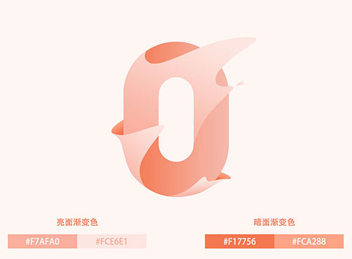 主體文字是一個(gè)比較明顯的從深色到淺色的漸變,左邊的深色是因?yàn)橐r在左邊的液體底下凸顯層次,所以漸變的位置要根據(jù)你的形狀來決定,能表現(xiàn)出陰影的感覺即可。注意這里的“深色”不能只是明度的變化,僅僅改變明度的話容易顯得臟,降低明度的同時(shí)提高飽和度,甚至色相也進(jìn)行相應(yīng)的變化。順便把畫布背景色也填充同色系的淺色。