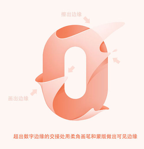 建議先在紙上畫一畫構(gòu)思一下,我是想象液體從左下角向右上噴到數(shù)字上,這樣比較容易決定各處的粘連以及層次關(guān)系。