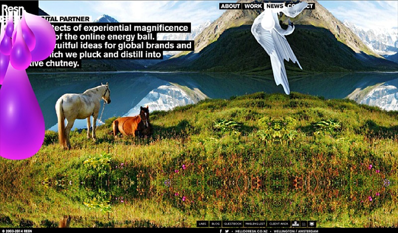 新西蘭Resn工作室的網(wǎng)站設計也起到了過濾觀眾的作用。這款設計極具特色,從圖片到文字都給人一種前所未有的體驗。實際上他們設計過很多符合大眾常規(guī)審美的優(yōu)秀作品,但是對于他們自己的網(wǎng)站和團隊設計,他們總是突破常規(guī),全然不在乎外界的看法。