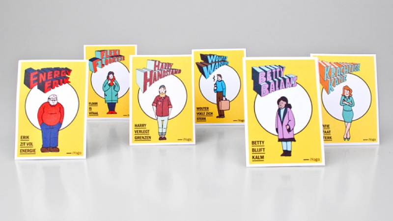 如果你是一名瑜伽信徒,便能了解瑜伽的巨大能量。一旦踏上瑜伽墊,你就會感受到內(nèi)心深處那個超凡的自我在慢慢蘇醒。但是在現(xiàn)實生活中,我們僅僅是平凡的個體。荷蘭設計公司Studio Airport以此為靈感設計了一系列外表平凡但具有強大意志的瑜伽修煉者形象,其中包括Wouter Waarrior、Harry Hanstand等等。他們通過服裝、體態(tài)、姓名和瑜伽力量不僅表現(xiàn)了人物特點,還表現(xiàn)了瑜伽工作室的廣泛受眾、專業(yè)能力以及趣味性。