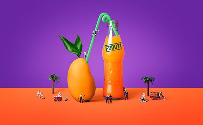 Sagmeister & Walsh為印度芒果汁品牌Frooti設計的廣告完美契合產(chǎn)品的清新特性。Sagmeister & Walsh表示他們的目標是設計一款“新鮮、大膽、有趣”的包裝,而且他們確實做到了,還把Frooti的產(chǎn)品特點展現(xiàn)得淋漓盡致。廣告的背景使用了鮮艷的配色,而且運用微型人像突出芒果和產(chǎn)品圖像的主要焦點。