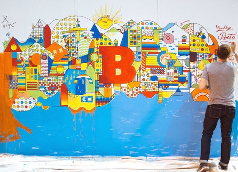 Brooklyn Beta大會每年都會把世界上一些極具創(chuàng)造性的人聚集到一起。Tobias van Scheider與Verena Michelisch合作,把“合作、創(chuàng)意、樂趣”的大會特點融入視覺標識的設計中,并且邀請所有參會者加入他們的創(chuàng)作。最終有超過800人參與了用作視覺標識的壁畫繪制。