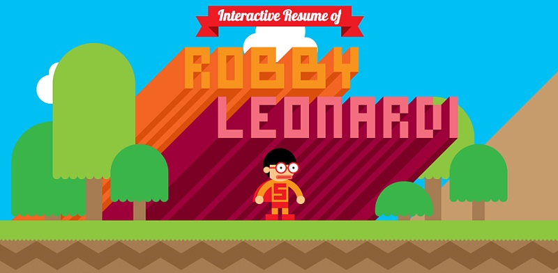 來自紐約的Robby Leonard設計的馬里奧系列動態(tài)簡歷十分新鮮有趣,他在游戲界面中加入了一個代表自己的人物角色,而且整個畫面顏色飽滿、元素豐富,表現(xiàn)了他天馬行空、充滿活力的創(chuàng)造性。