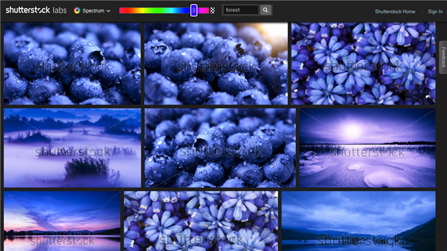你可能會問:如果我想用我所選擇的顏色搜索照片? 那么,Shutterstock有一個叫做Spectrum的工具,你可以用特定的語氣搜索照片。 您甚至不需要訂閱,因為具有水印的小預覽圖像將足以生成調色板。