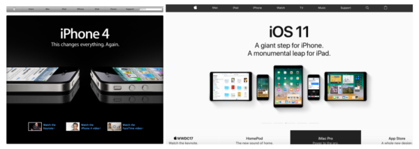 首先,這是蘋(píng)果官網(wǎng)六年前的照片與今天樣子的對(duì)比。