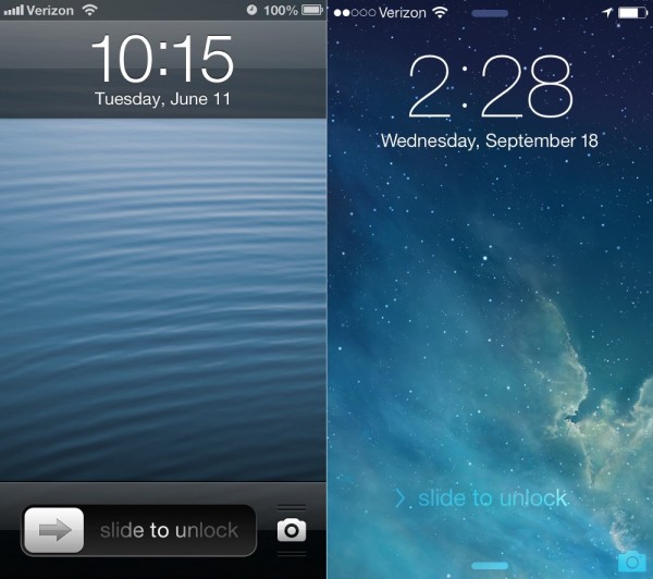 iOS 6 到 iOS 7 蘋(píng)果鎖屏的變化