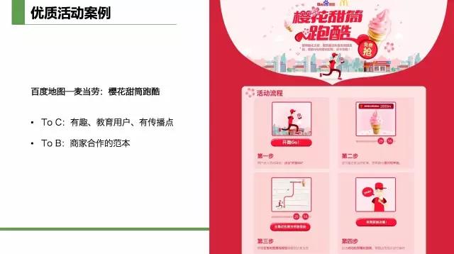 用戶只需要拿起手機,打開百度地圖app,查找周邊的麥當勞,就可以參與。像一個線上和線下結合的游戲一下,很有趣。