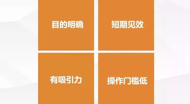 根據(jù)以上的優(yōu)秀活動案例,總結出活動的四個特點:目的明確、短期見效、有吸引力、操作門檻低。