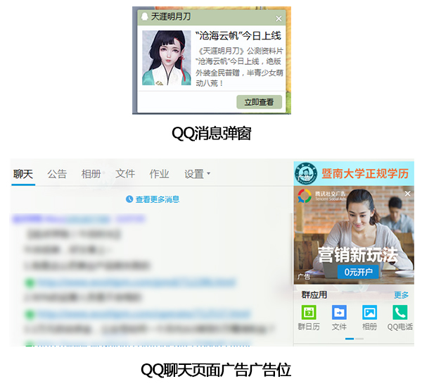 在找活動(dòng)資源的時(shí)候,可以?xún)?yōu)先考慮公司內(nèi)部資源,諸如騰訊這種有大量產(chǎn)品以及用戶(hù)的資源的公司,每推出一款產(chǎn)品,都能借助內(nèi)部資源輕松獲取用戶(hù)資源,常見(jiàn)的形式有QQ消息彈窗,聊天頁(yè)面右側(cè)的廣告位。如果自己公司有內(nèi)部資源就不需要耗費(fèi)時(shí)間去尋找資源。