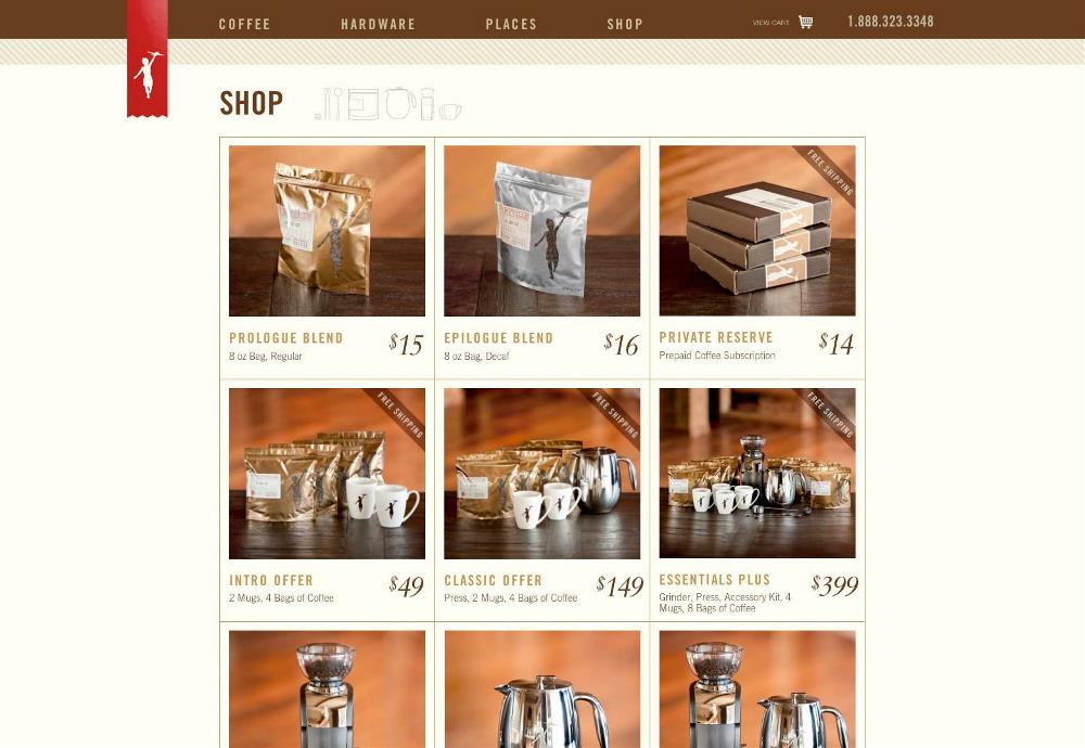 僅僅絲帶采用了深紅色,這是高端大氣的奢侈咖啡網(wǎng)站的配色(這個(gè)咖啡確實(shí)很好喝)。