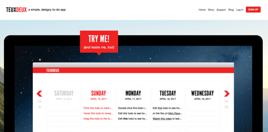這個(gè)原則在體驗(yàn)設(shè)計(jì)中也有效。TeuxDeux的首頁(yè)是個(gè)很好的例子。