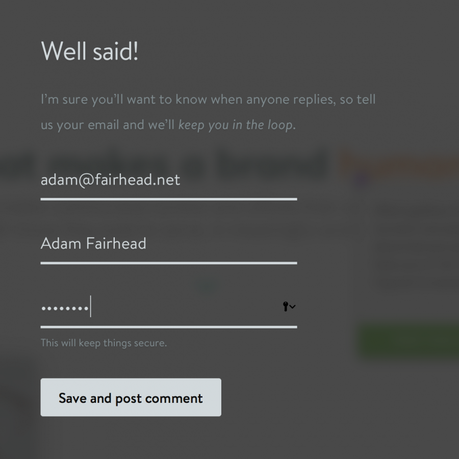 我在圖片上寫(xiě)了好幾條備注之后,才彈出一個(gè)模態(tài)窗口,寫(xiě)著:“說(shuō)得好!我確信你想要知道有沒(méi)有人回復(fù),留下你的電子郵箱,我們會(huì)及時(shí)聯(lián)系你的?!?