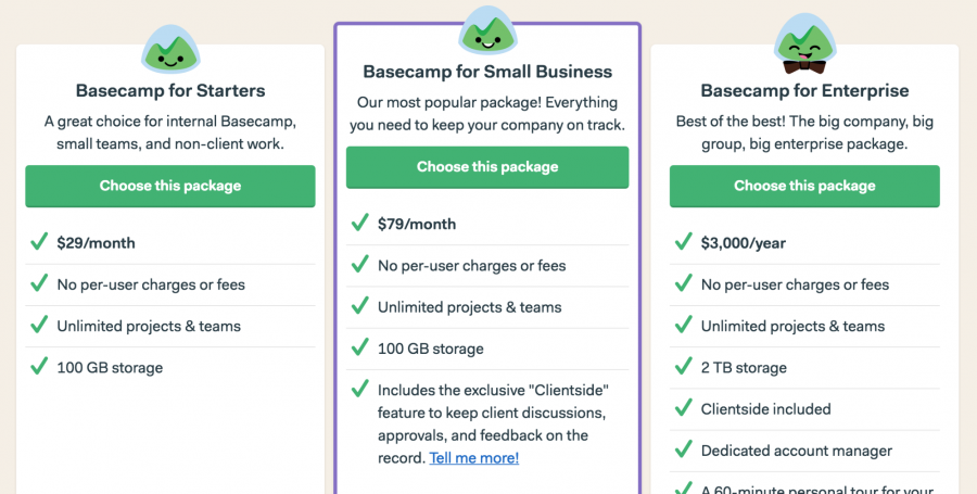 Basecamp是個(gè)很好的隱藏盡頭的案例。在Basecamp里,沒(méi)有“哎呀,你不能這么做”這樣的消息。不像多數(shù)SaaS產(chǎn)品,并不會(huì)因?yàn)槟阌玫锰?,才要求你升?jí)然后才能繼續(xù)使用。相反,升級(jí)可以解鎖你之前沒(méi)有權(quán)限使用的新功能。