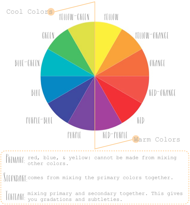 基本的色輪要分為暖色和冷色,例如藍色和綠色在一邊,黃色和紅色在另一邊。中間的顏色可冷可暖,主要看你怎么搭配。至于婚禮的風(fēng)格和設(shè)計,你要避免使用原色,因為原色會讓你的作品看起來像是幼兒園級別。