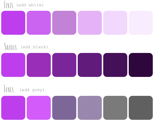 優(yōu)秀的互補色方案不難想出,而且很容易就能做到讓人眼前一亮。只需先選擇一種顏色做主色,然后在色輪上尋找它的補色,將補色按色溫、陰影、色調(diào)分成不同的顏色。最后增加你的輔助色和素色。下圖的例子中,我選擇讓紫色系做主色,黃色做互補色。