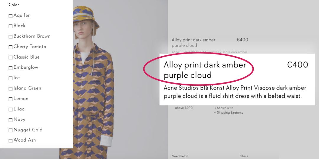 話雖如此,好的網(wǎng)站和應(yīng)用程序盡可能的普遍地保持顏色描述?!皽\粉色”或“深藍(lán)色”襯衫是描述產(chǎn)品顏色的更好方法。