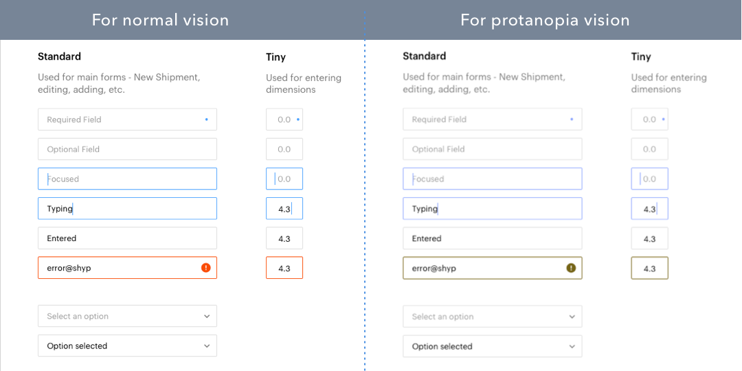 設(shè)計(jì)表單時(shí)的常見(jiàn)做法是以不同的顏色標(biāo)記強(qiáng)制輸入字段。如果用戶嘗試提交沒(méi)有填寫(xiě)的必填字段,輸入字段的邊框?qū)⒏臑榧t色,表示錯(cuò)誤。但是,我們必須知道不是所有的用戶都以同樣的方式來(lái)體驗(yàn)顏色。