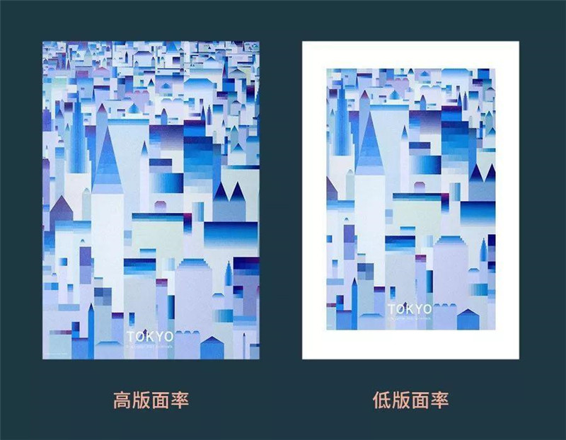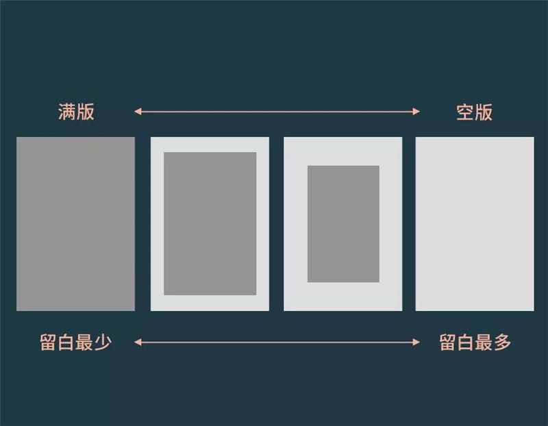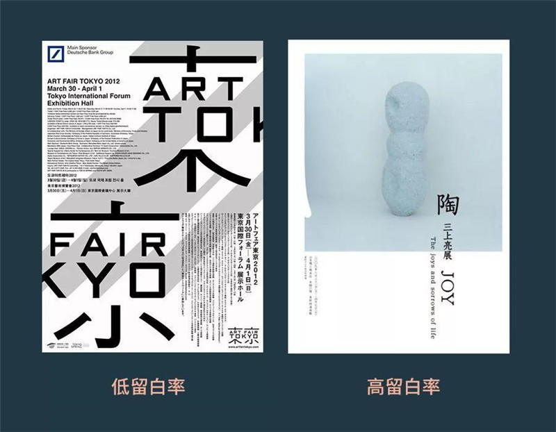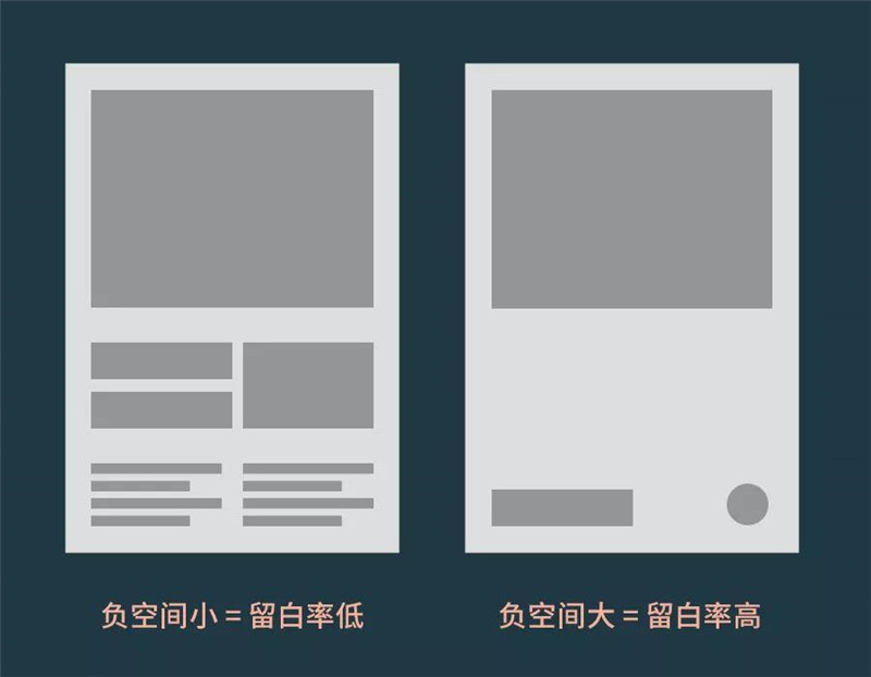 負空間的多少即是留白的多少。留白的多少我們可以用留白率來表示,如上圖,負空間小的留白肯定少,留白率就低。負空間大的的留白肯定多,留白率就高。
