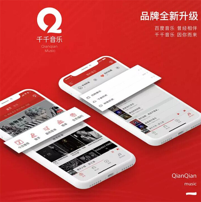 隨著品牌的升級,“千千音樂”全新的品牌形象設(shè)計也一并出爐。新形象以紅色為主,并巧妙的將音符和字母“Q”結(jié)合在一起。不過這用色很容易讓我想到網(wǎng)易云音樂,并沒有看到太多的所謂差異化。